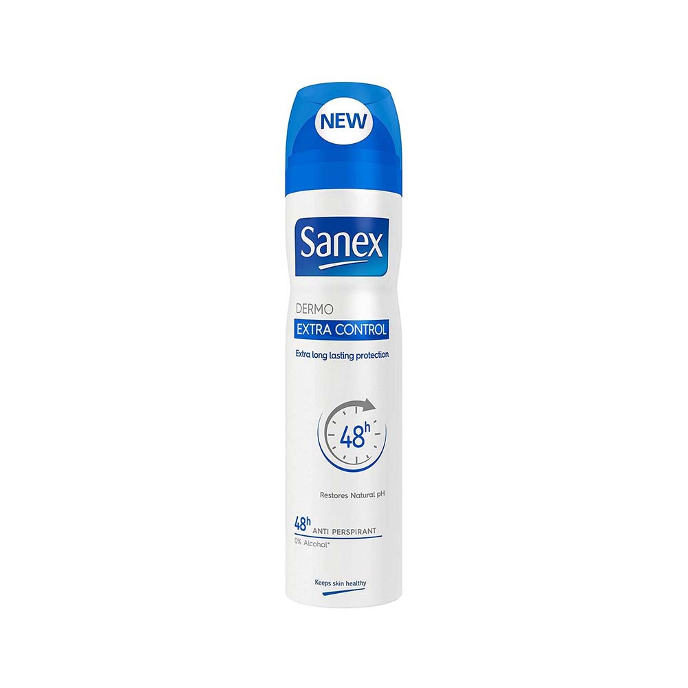 اسپری ضدتعریق سانکس Sanex Dermo Extra Control دارای قابلیت محافظت کنندگی طولانی مدت 48 ساعته از خشکی و تازگی زیربغل می باشد. اسپری بدن سانکس بدون الکل بوده و با pH طبیعی پوست متعادل بوده و آن را در حالت خنثی نگه می دارد و مراقبت کننده روزانه سلامتی پوست است.